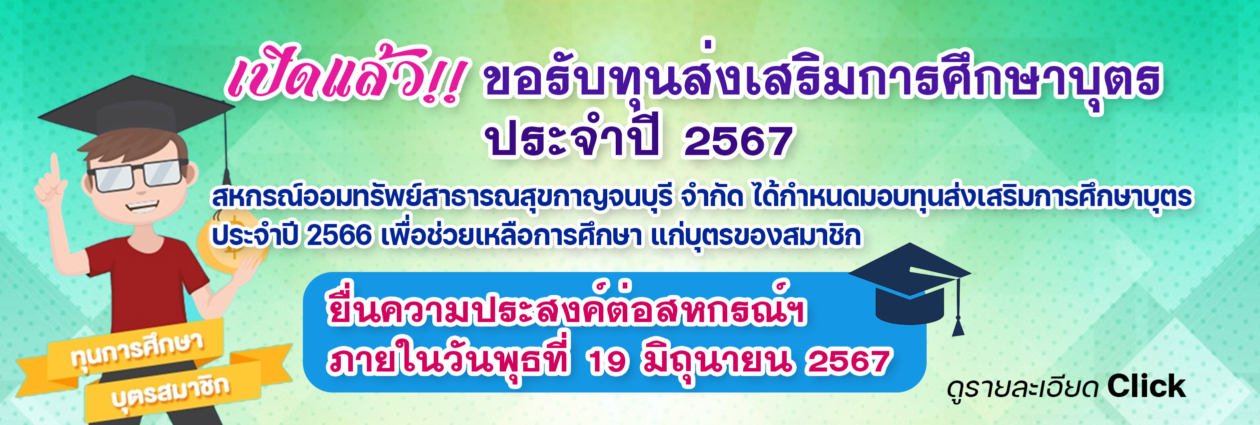 สหกรณ์ได้มอบทุนส่งเสริมการศึกษาบุตรของสมาชิกสหกรณ์ออมทรัพย์สาธารณสุขกาญจนบุรี จำกัด ประจำปี 2567 จำนวน 4 ระดับชั้น จำนวน 80 ทุน .