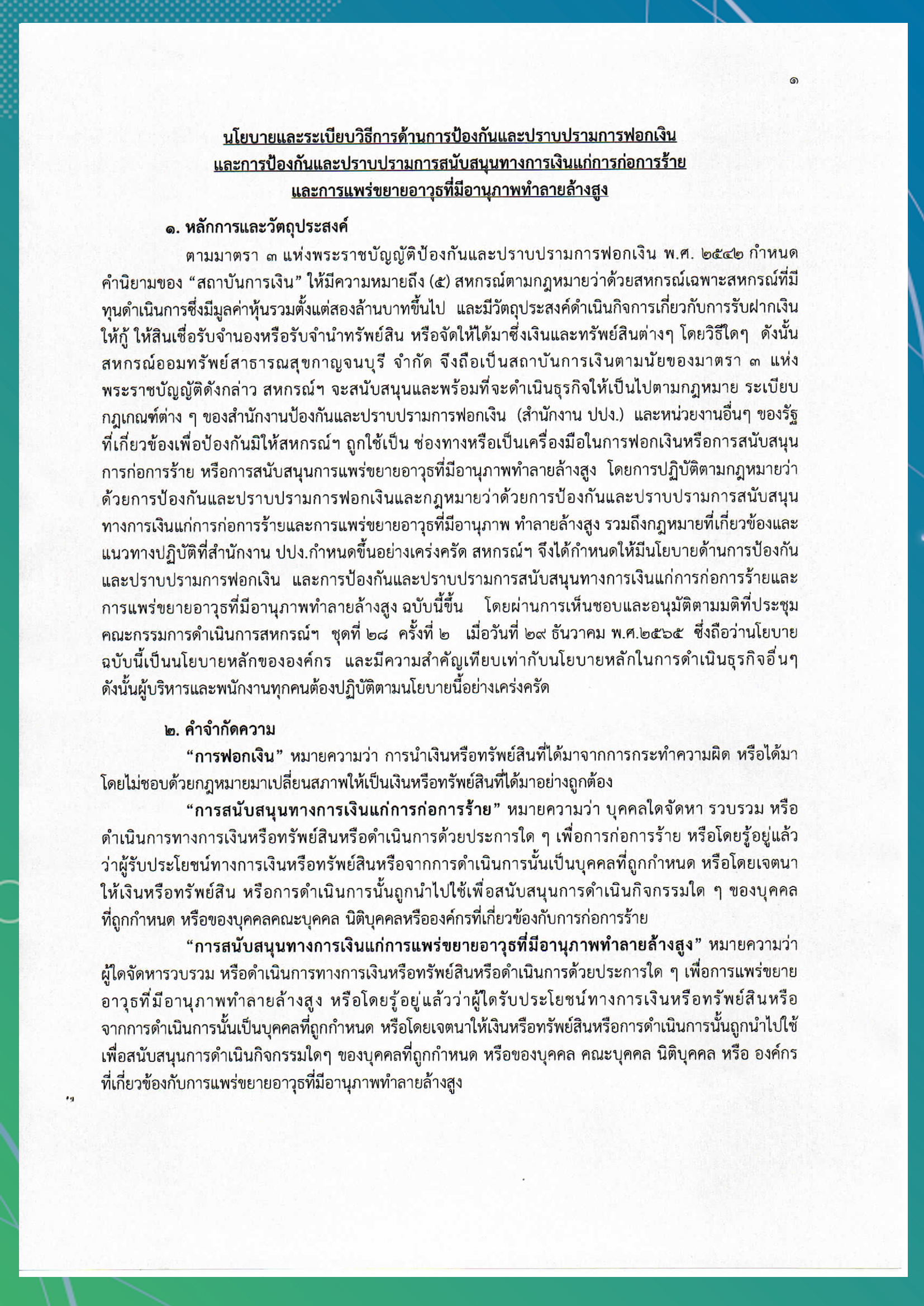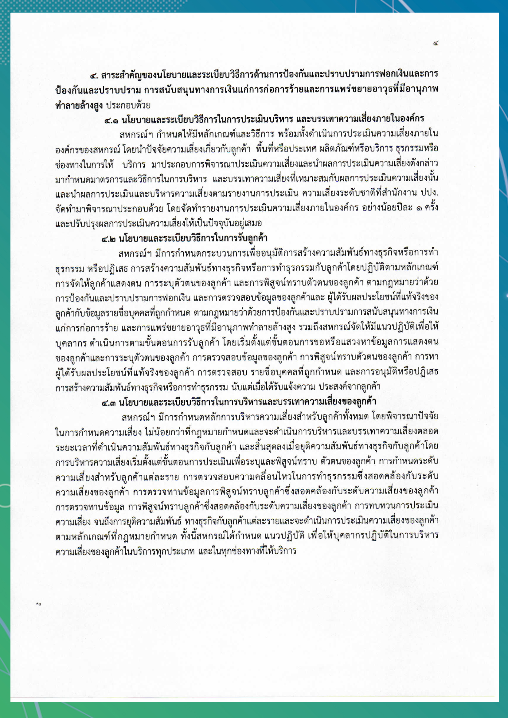 Articles เรื่อง นโยบายด้านการป้องกันและปราบปรามการฟอกเงิน kancoop ประกาศจากสหกรณ์ 17 January 2023 Please Rate Vote 1 Vote 2 Vote 3 Vote 4 Vote 5 Prev Next